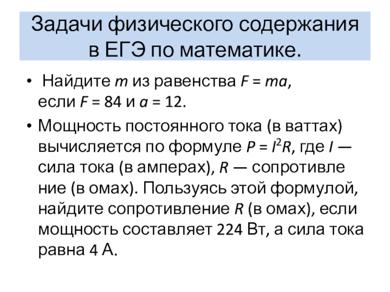 Слайд 16Задачи физического содержания в ЕГЭ по математике.