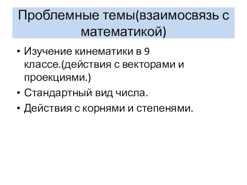Слайд 18Проблемные темы(взаимосвязь с математикой)