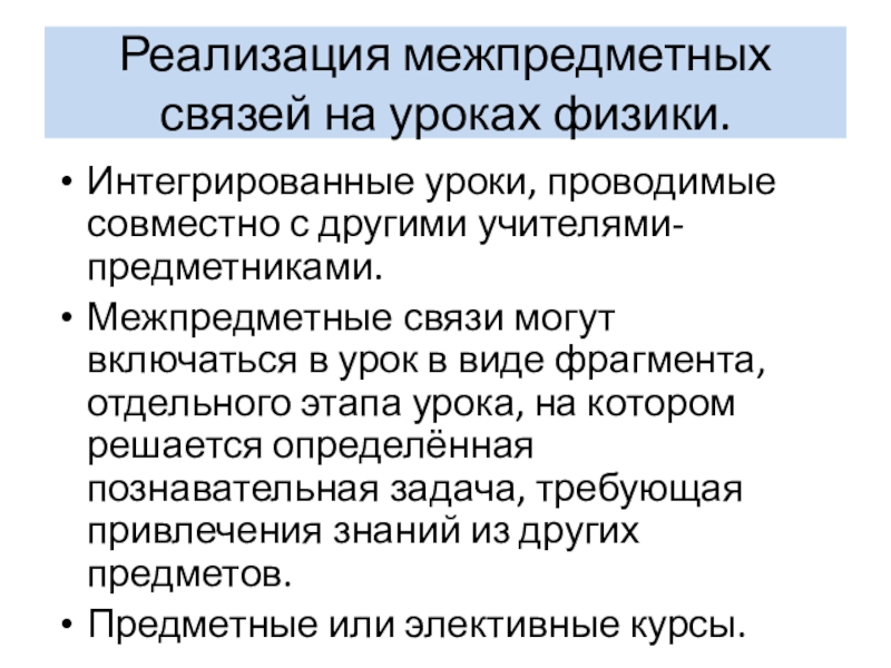 Слайд 6Реализация межпредметных связей на уроках физики.