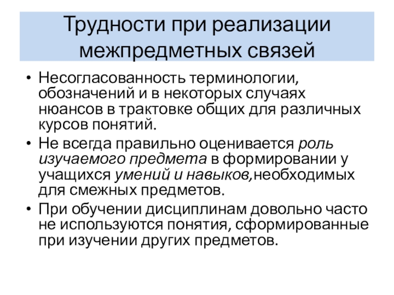 При обучении дисциплинам довольно часто не используются понятия, сформированные при изучении других предметов.