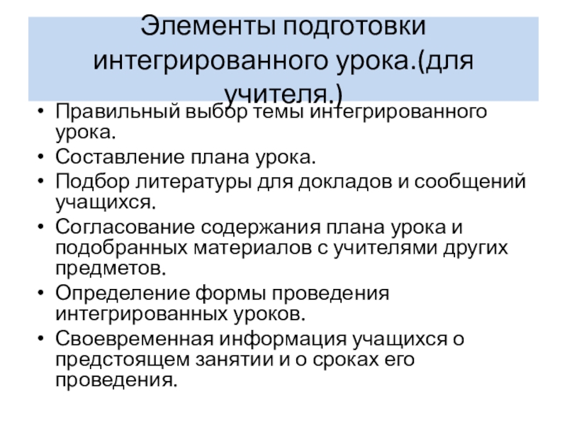 Слайд 8Элементы подготовки интегрированного урока.(для учителя.)