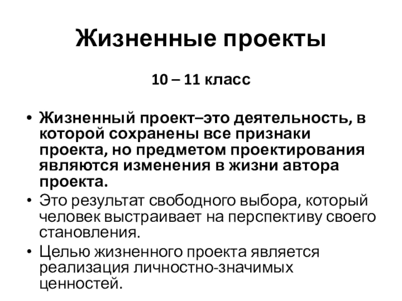 Целью жизненного проекта является реализация личностно-значимых ценностей.