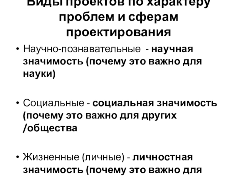 Слайд 5Виды проектов по характеру проблем и сферам проектирования