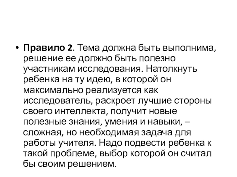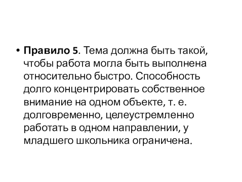 Слайд 14Правило 5. Тема должна быть такой, чтобы работа могла быть выполнена