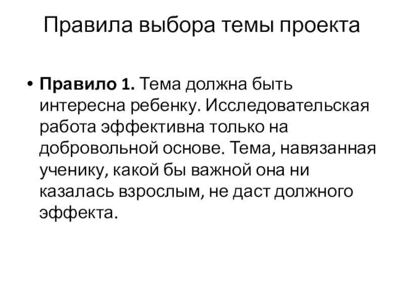 работа эффективна только на добровольной основе. Тема, навязанная ученику, какой бы важной она ни казалась взрослым, не даст должного эффекта.