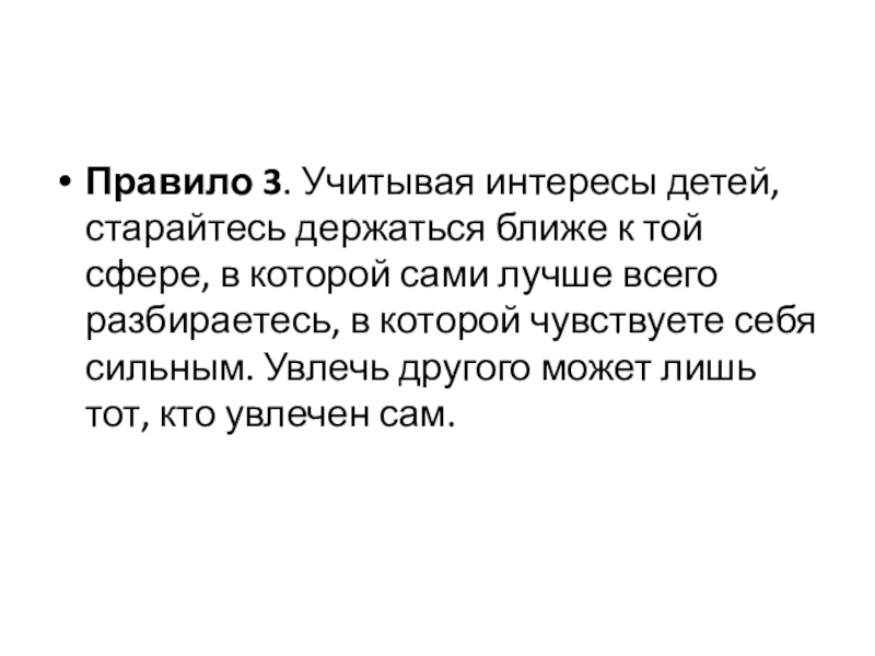 Слайд 12Правило 3. Учитывая интересы детей, старайтесь держаться ближе к той сфере,
