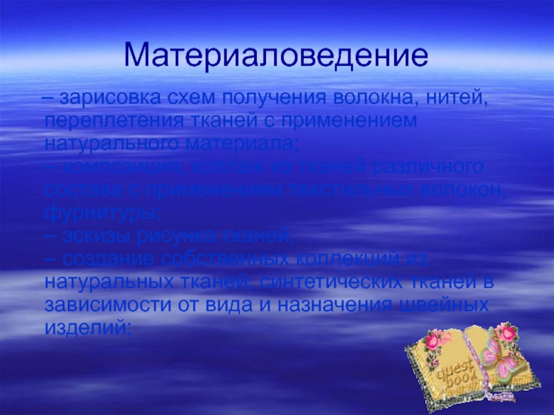 – создание собственных коллекций из натуральных тканей, синтетических тканей в зависимости от вида и назначения швейных изделий;