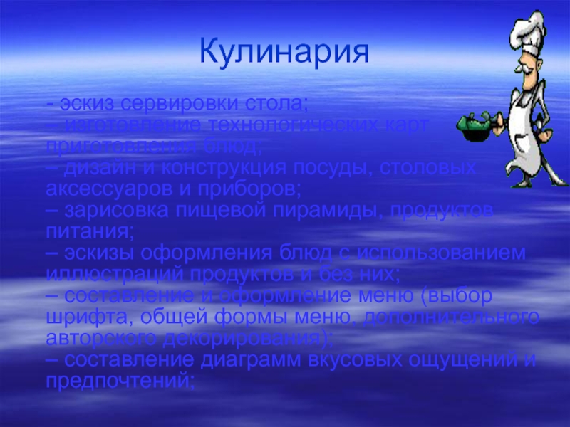 – эскизы оформления блюд с использованием иллюстраций продуктов и без них;
