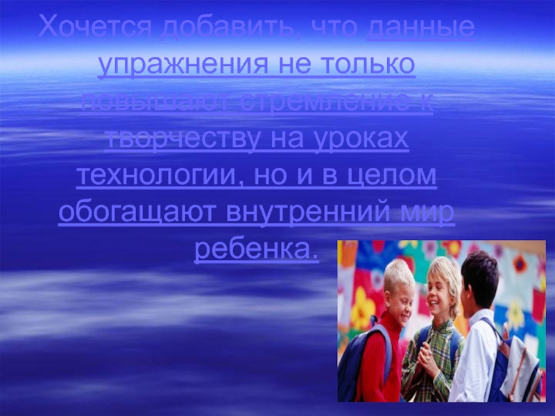 Слайд 19Хочется добавить, что данные упражнения не только повышают стремление к творчеству