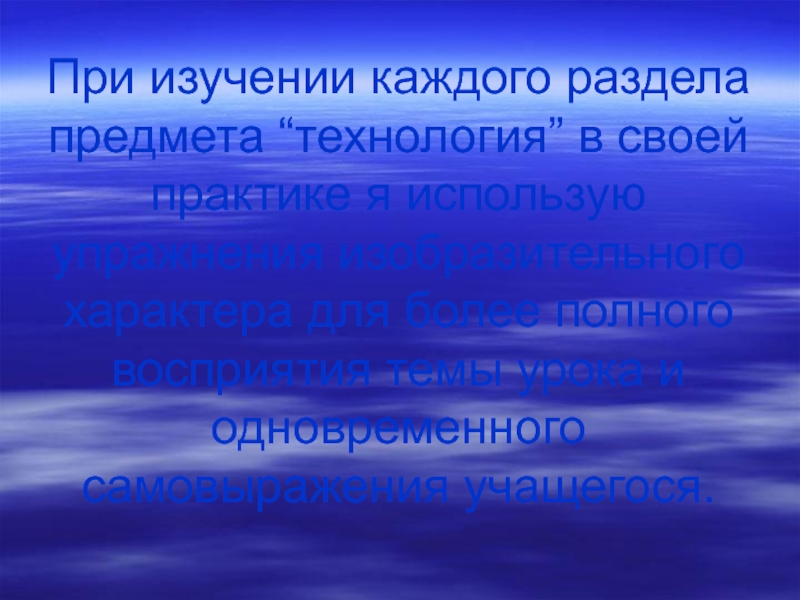 Слайд 4При изучении каждого раздела предмета “технология” в своей практике я использую