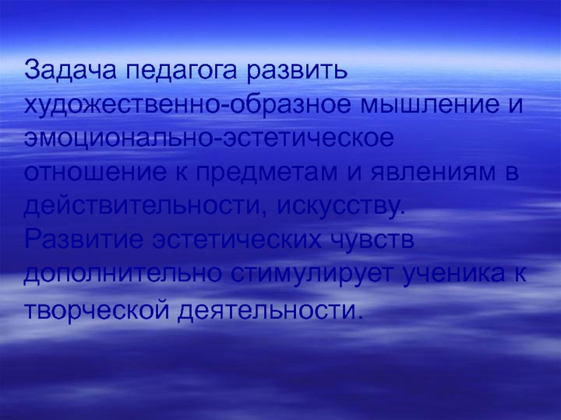 Слайд 3Задача педагога развить художественно-образное мышление и эмоционально-эстетическое отношение к предметам и