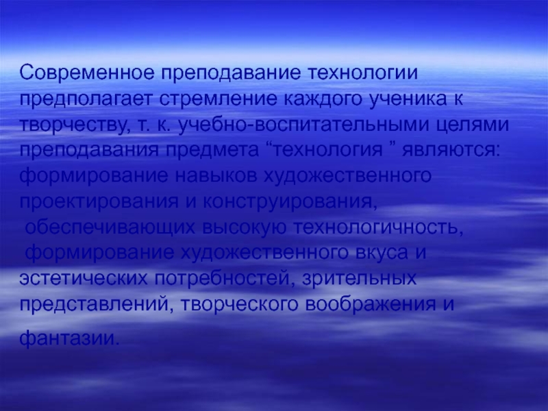 Слайд 2Современное преподавание технологии предполагает стремление каждого ученика к творчеству, т. к.