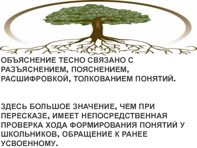 Слайд 7Объяснение тесно связано с разъяснением, пояснением, расшифровкой, толкованием понятий. Здесь большое значение,