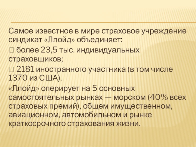 Слайд 27Самое известное в мире страховое учреждение синдикат «Ллойд» объединяет: