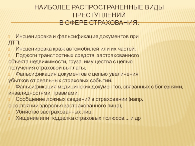 1)обман в наступлении страхового случая (фиктивное наступление страхового случая).