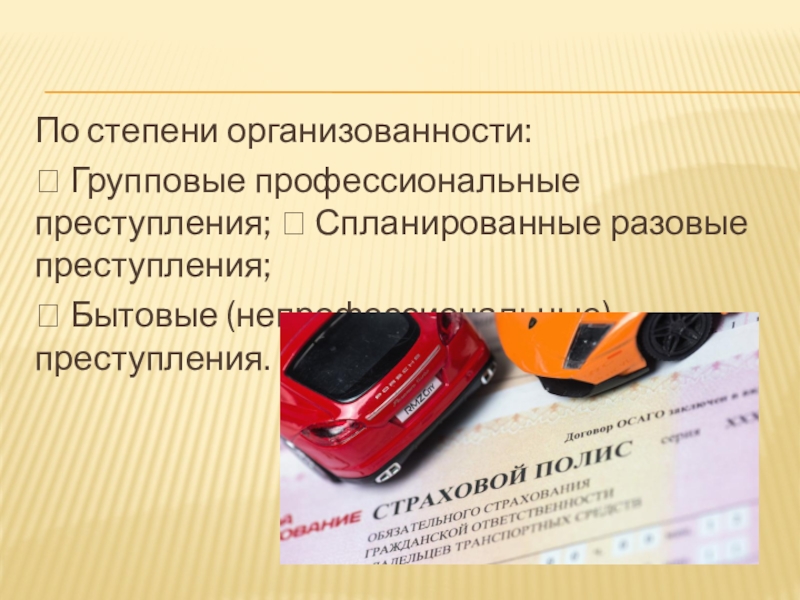 Групповые профессиональные преступления; Спланированные разовые преступления;
