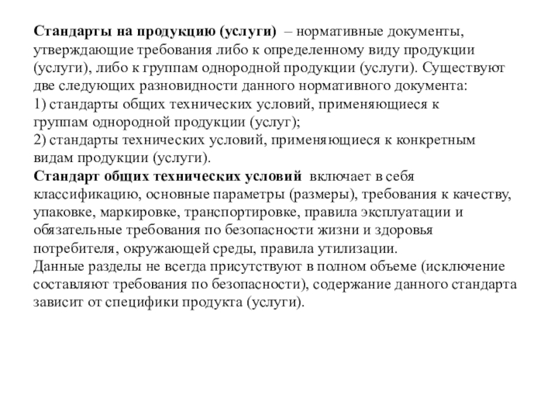 Слайд 12Стандарты на продукцию (услуги) – нормативные документы,