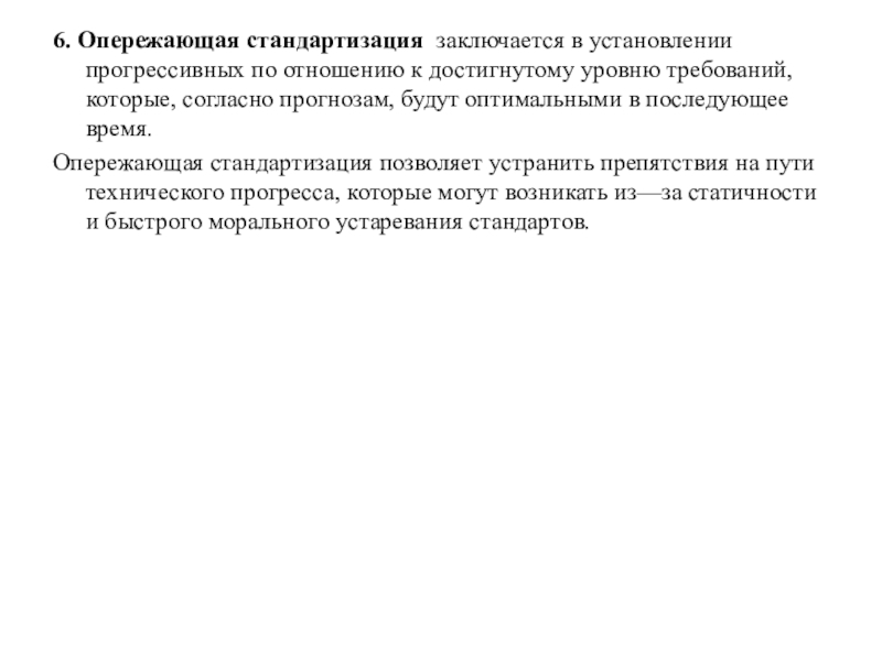 Слайд 106. Опережающая стандартизация заключается в установлении прогрессивных по отношению к достигнутому уровню