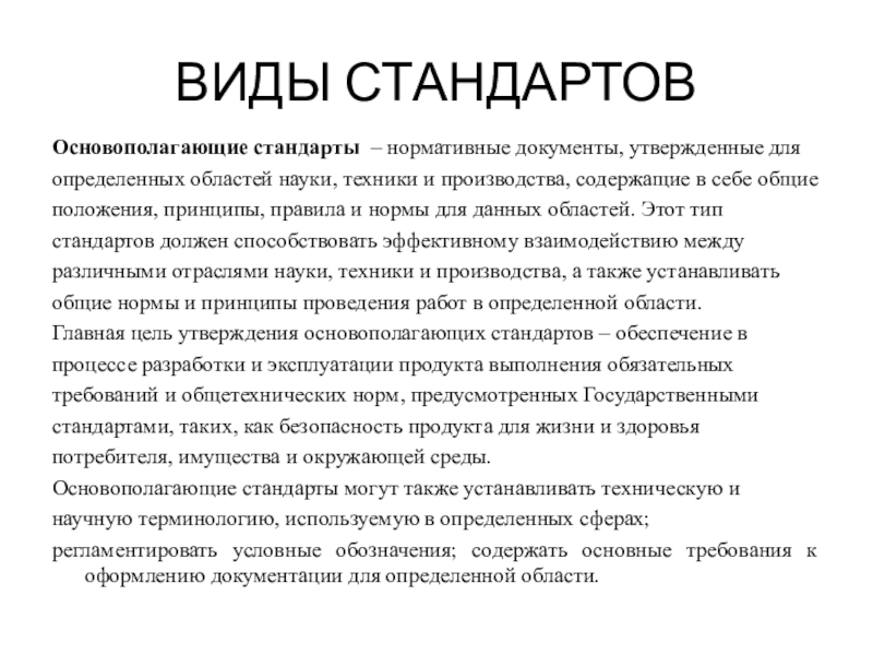 Слайд 11ВИДЫ СТАНДАРТОВ