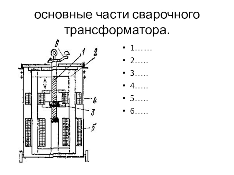 основные части сварочного трансформатора.1……2…..3…..4…..5…..6…..
