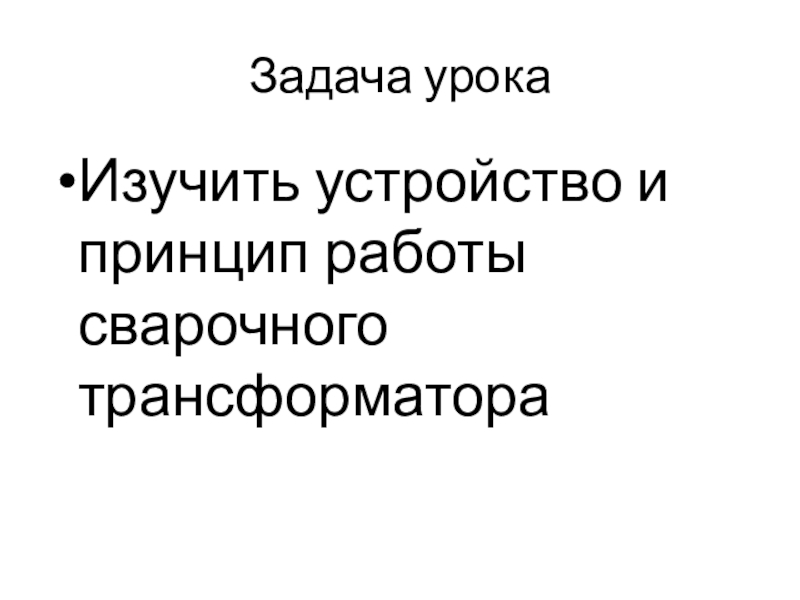 Задача урокаИзучить устройство и принцип работы сварочного трансформатора