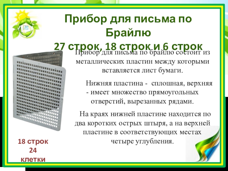 Прибор для письма по Брайлю