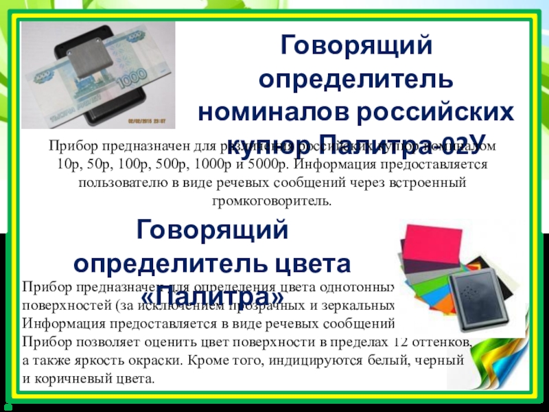 Говорящий определитель номиналов российских купюр Палитра-02У