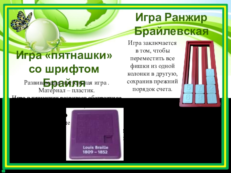 Игра «пятнашки» со шрифтом Брайля