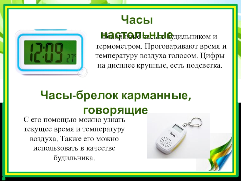 С его помощью можно узнать текущее время и температуру воздуха. Также его можно использовать в качестве