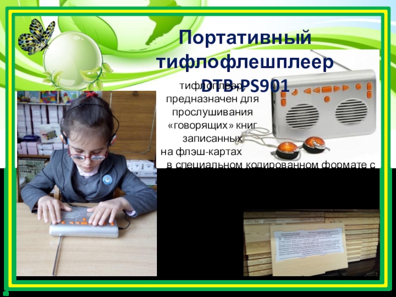 тифлоплеер, предназначен для прослушивания «говорящих» книг записанных