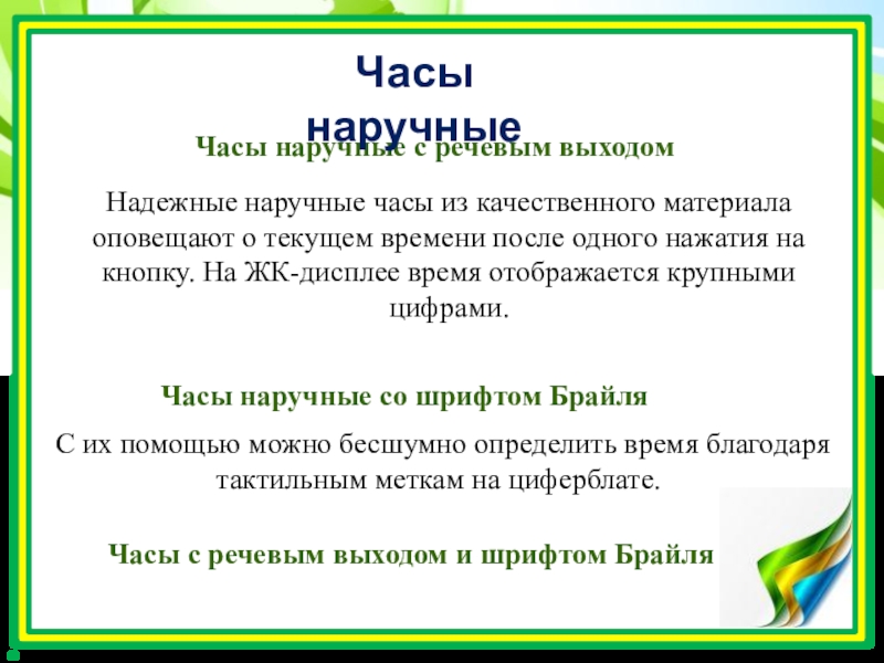 Часы наручные со шрифтом Брайля