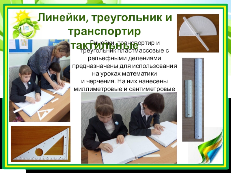 Линейки, треугольник и транспортир тактильные