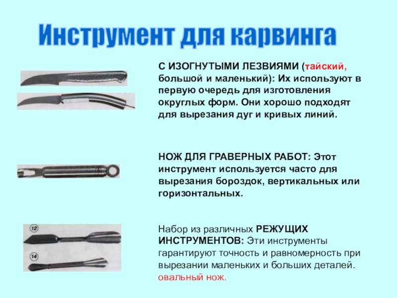 Набор из различных РЕЖУЩИХ ИНСТРУМЕНТОВ: Эти инструменты гарантируют точность и равномерность при вырезании маленьких и больших деталей. овальный нож.