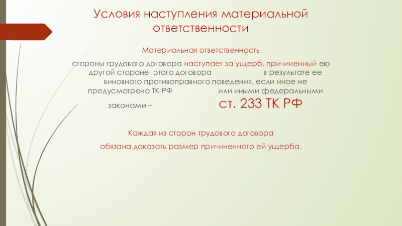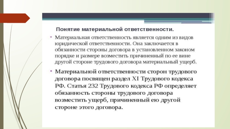 Трудовым договором может конкретизироваться материальная ответственность сторон трудового договора – ст.232 ТК РФ