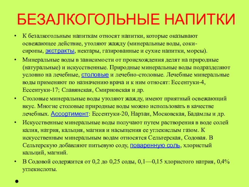 К безалкогольным напиткам относят напитки, которые оказывают освежающее действие, утоляют