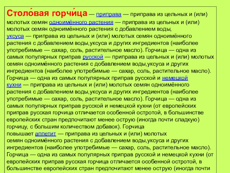 Слайд 24Столо́вая горчи́ца — приправа — приправа из цельных и (или) молотых семян одноимённого растения — приправа из цельных и (или)
