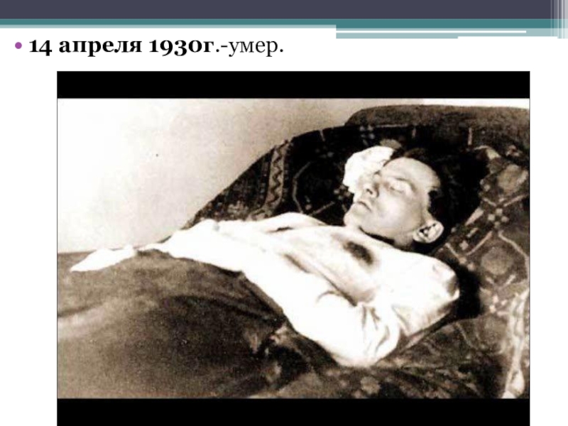 Слайд 1314 апреля 1930г.-умер.