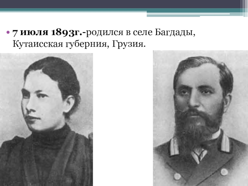 Слайд 27 июля 1893г.-родился в селе Багдады, Кутаисская губерния, Грузия.