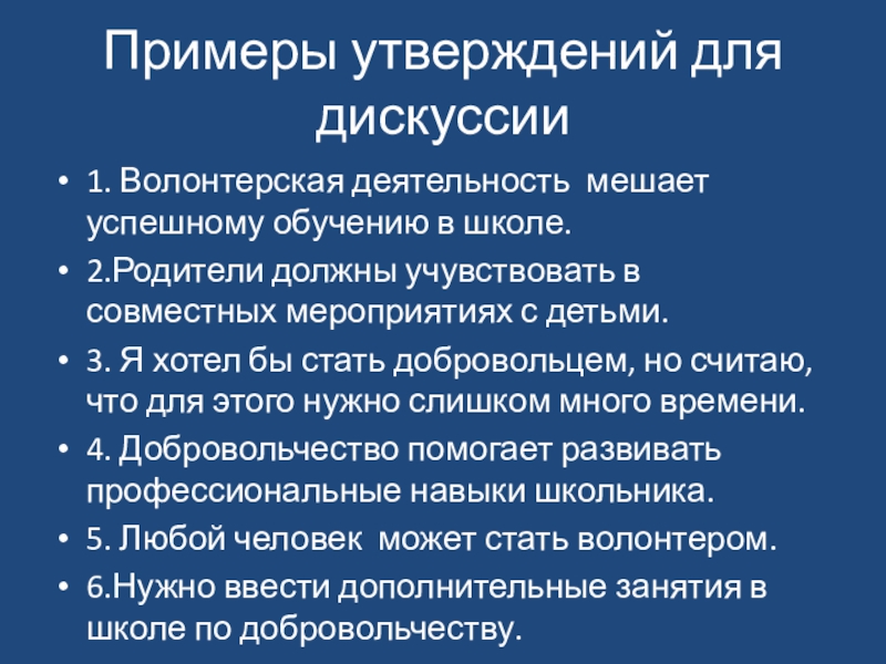 1. Волонтерская деятельность мешает успешному обучению в школе.