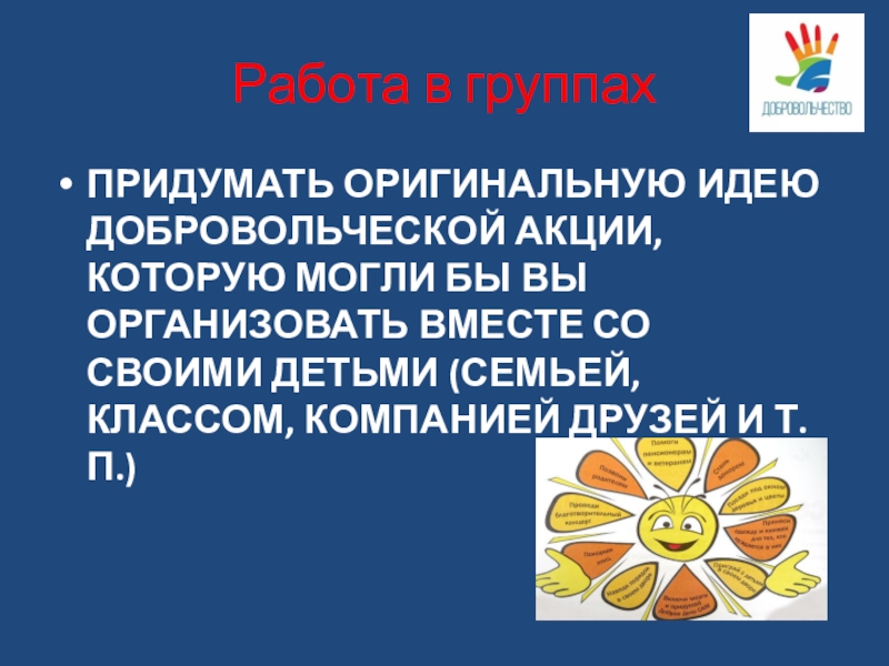 ПРИДУМАТЬ ОРИГИНАЛЬНУЮ ИДЕЮ ДОБРОВОЛЬЧЕСКОЙ АКЦИИ, КОТОРУЮ МОГЛИ БЫ