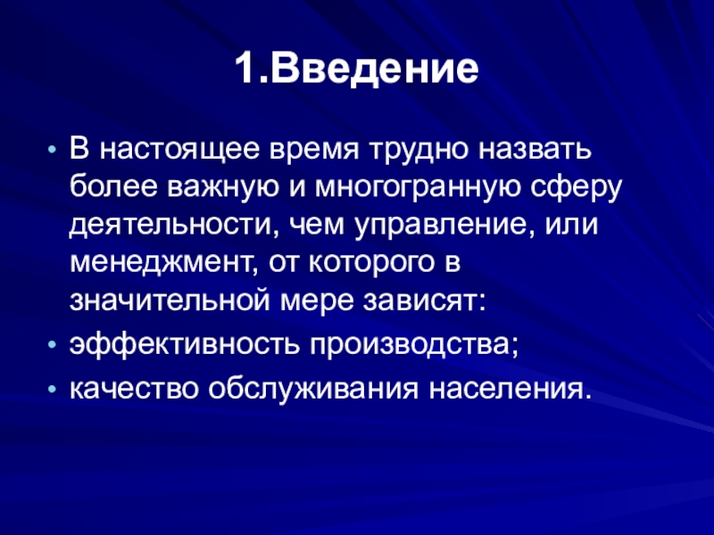 1.ВведениеВ настоящее время трудно назвать более важную и многогранную сферу деятельности, чем управление, или менеджмент, от которого