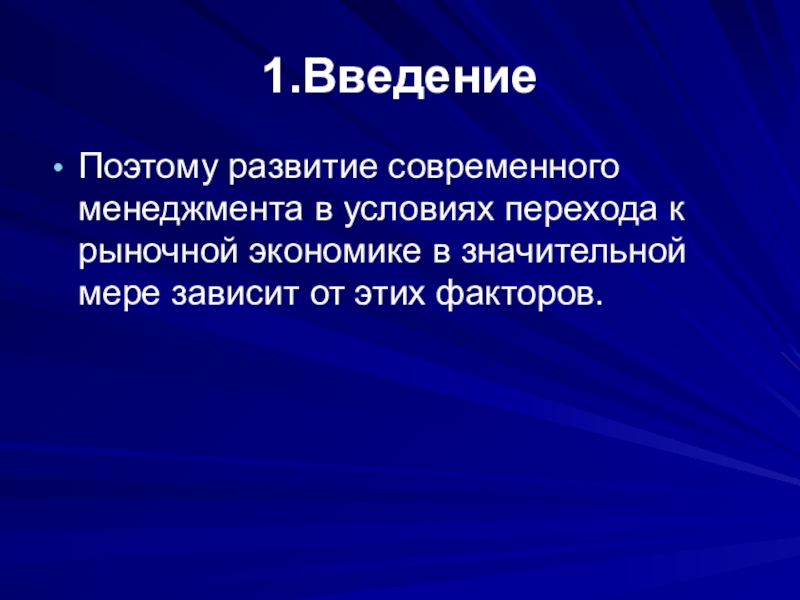 1.ВведениеПоэтому развитие современного менеджмента в условиях перехода к рыночной экономике в значительной мере зависит от этих факторов.