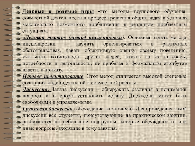 Слайд 16Деловые и ролевые игры -это методы группового обучения совместной деятельности в
