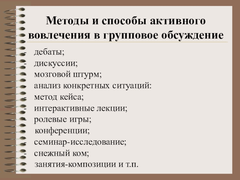 Методы и способы активного вовлечения участников тренинга в групповое обсуждение