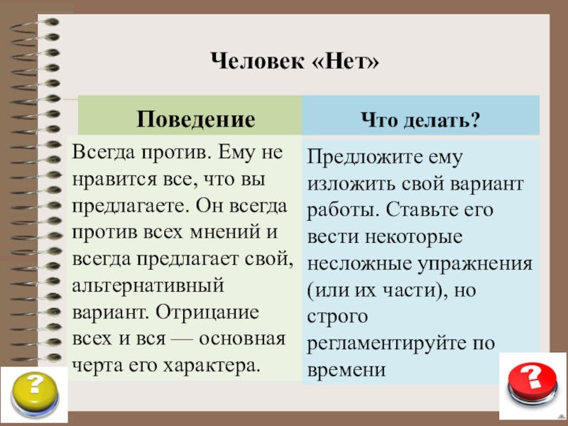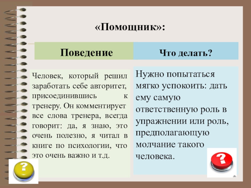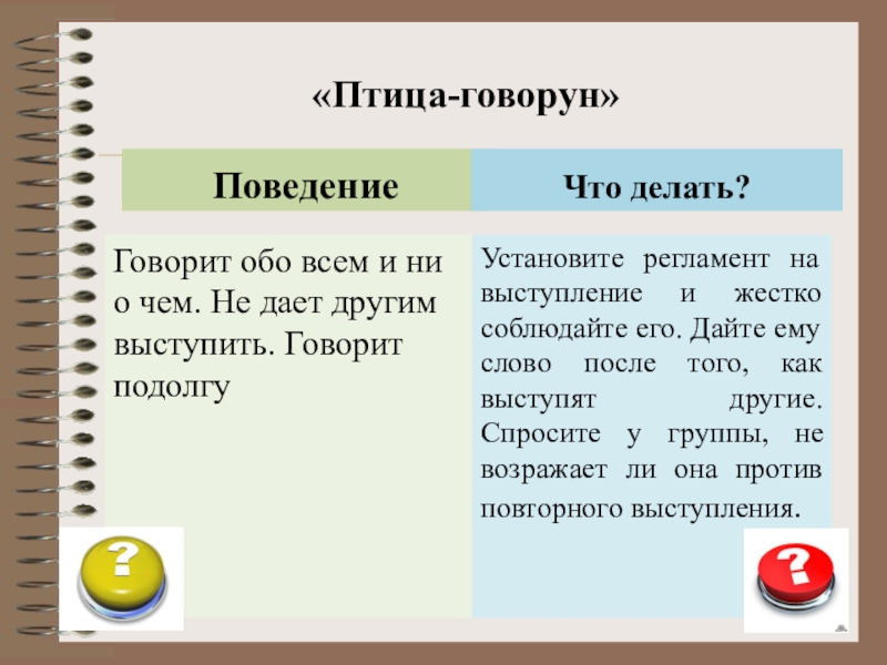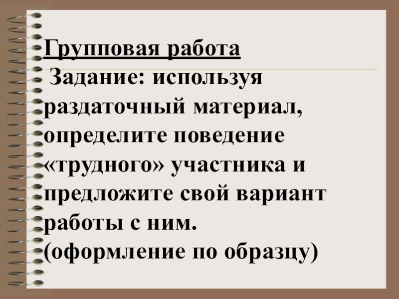 Задание: используя раздаточный материал, определите поведение «трудного» участника и
