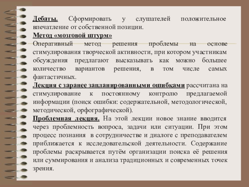 Лекция с заранее запланированными ошибками рассчитана на стимулирование к постоянному контролю предлагаемой информации (поиск ошибки: содержательной, методологической, методической, орфографической).
