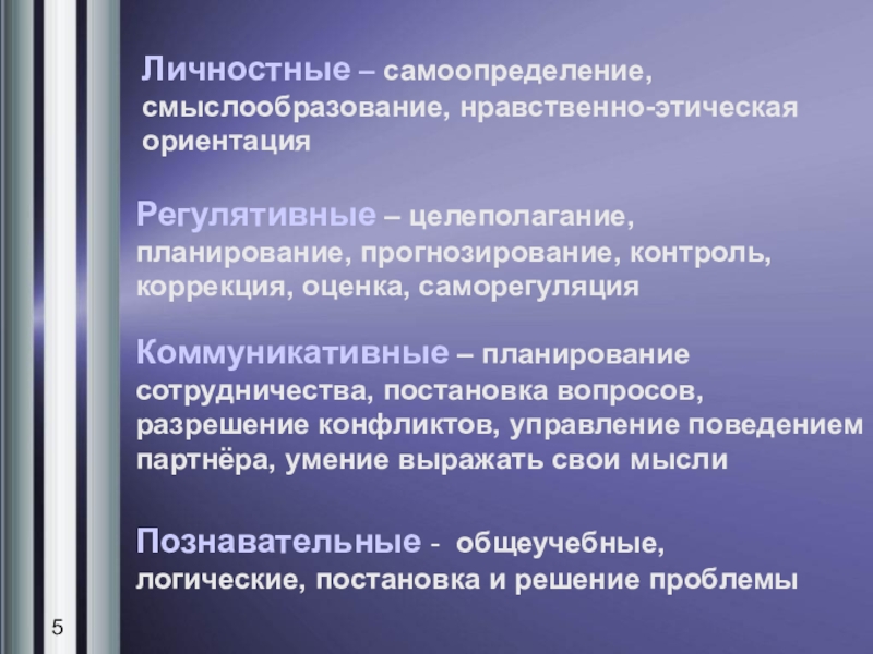 Познавательные - общеучебные, логические, постановка и решение проблемы