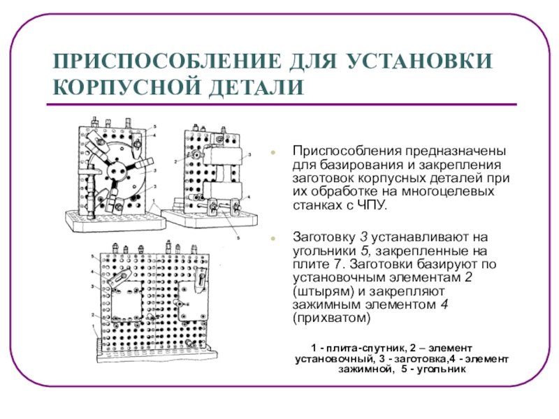 Слайд 16ПРИСПОСОБЛЕНИЕ ДЛЯ УСТАНОВКИ КОРПУСНОЙ ДЕТАЛИ