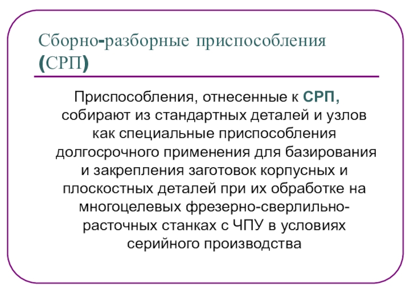 Приспособления, отнесенные к СРП, собирают из стандартных деталей и