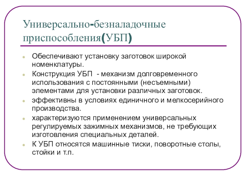 Слайд 3Универсально-безналадочные приспособления(УБП)
